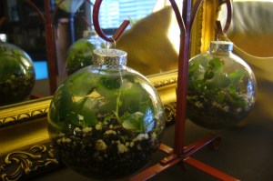 These little glass balls are for crafting Christmas ornaments and in this case, that is what I made, right? At a thrift store I found this cute little red metal tree, for displaying Christmas bulbs I guess, so that’s exactly what I did. The great part is that it makes one heck of a Christmas decoration, the bad part is that these little glass balls are quite delicate. What I mean by that is that if you overload one, the little metal thing on top will just pull out and you’ll have one little mighty holiday mess you just don’t need.