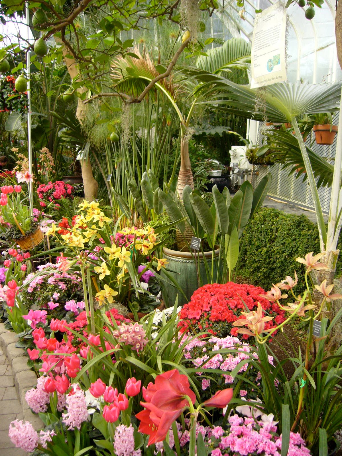 The Seymour Conservatory is listed on the US National Register of Historic Places. And as far as I know, it is one of only a handful of historic public conservatories on the West Coast. Built in 1907, the entire structure holds about 3,500 panes of glass, and the collection there currently contains about 550 plant species. In addition, the floral display in the image above is part of their ongoing program to always have a blooming display year-round.