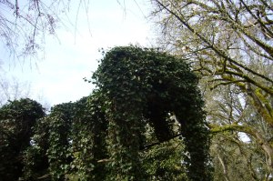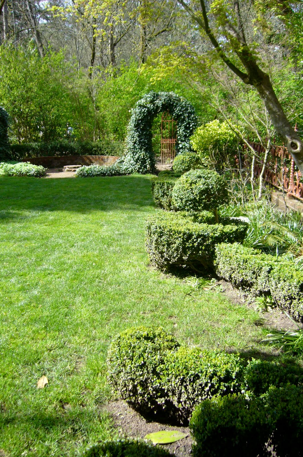 Back on March 20th I attended a native plant sale at the Historic Deepwood Estate in Salem, Oregon. Since I’d only been there once, and it had been an autumn visit, I was really looking forward to seeing what springtime had to offer. Not only were all of the usual bulb suspects in bloom, but the native trout lilies (Erythronium oregonum) were ablaze too. Unfortunately, I was unable to capture the woodland forest floor in bloom, but I was able to snap this image of a piece of architectural folly in the landscape.