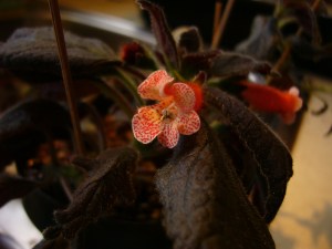 One of today’s purchases was this Kohleria “Tropical Night” plant. As can be seen in the photo, it was hard to miss at the sale and I was really excited once I put it in the windowsill upon my arrival home. Though it will grow quite a bit more in the coming months, its lush tropical Central American beauty just warmed my heart and melted away something tired inside of me. What I’m left with after that is my continual and ongoing fascination with African Violet folks, and an earache I just cannot get rid of from this horrible head cold I’ve contracted sometime in the last few days.