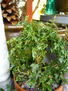 Another thing I have become more and more proud of are my ivy topiary items. Since ivy is considered the ultimate evil in these parts, even if you just have the completely non-agressive type, I keep it around just in case. The leaves on this are the tiniest I have ever seen.
