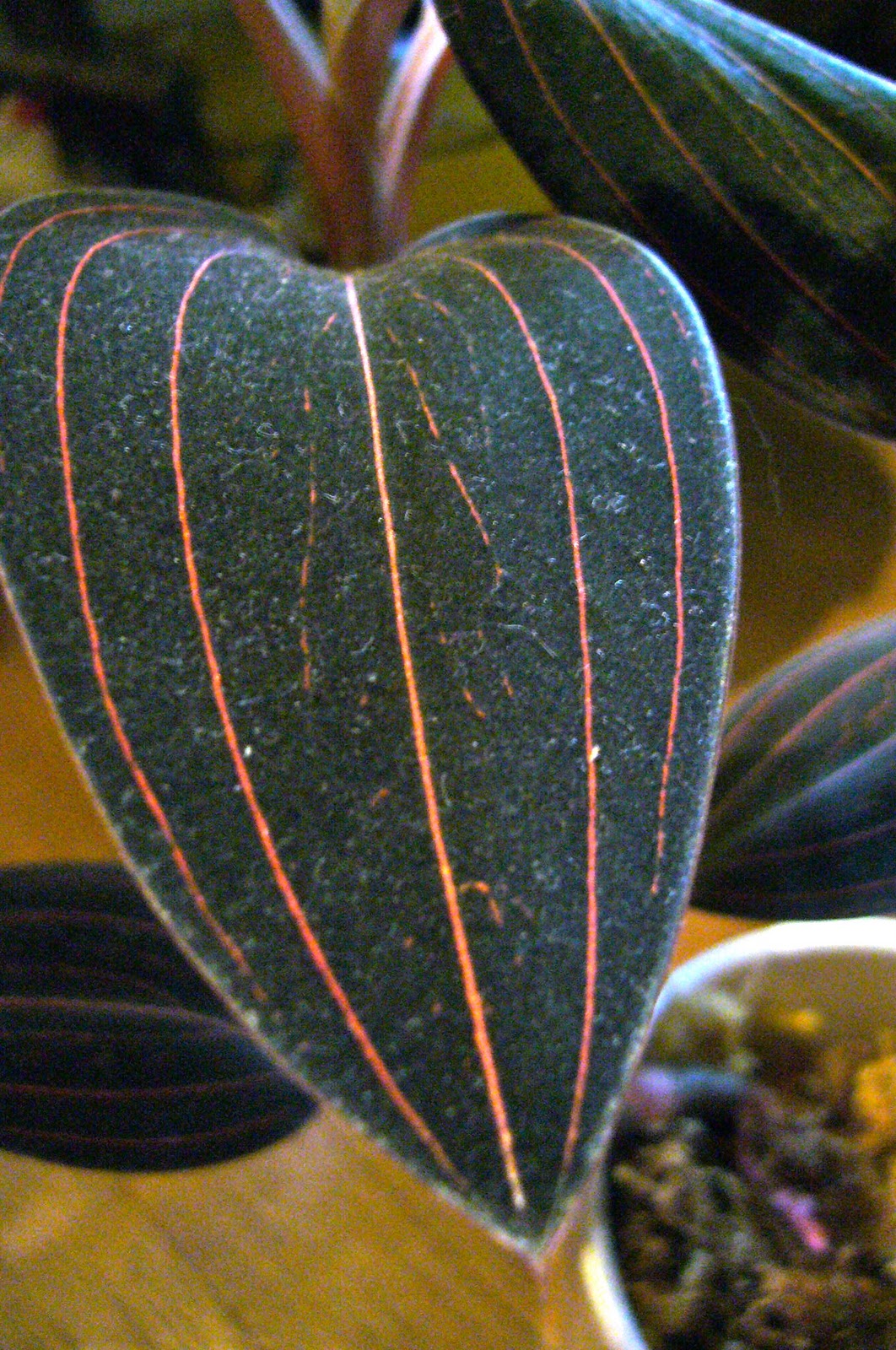 The Black Jewel Orchid and I have not been great friends though I have read that these are easy plants to live with. This picture makes the leaf look really dusty, but it wasn’t that bad. Notice those amazing pinstriped lines. Even if these are a bit picky, the leaves alone make them worth it. They really add to the plant’s year-round interest.