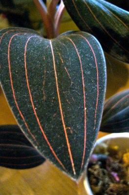 | Leaf of the Black Jewel Orchid, (Ludisia discolor) |