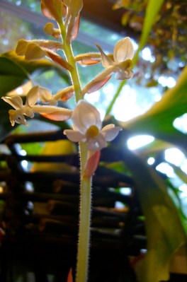 | First blooms on our Black Jewel Orchid (Ludisia discolor) |