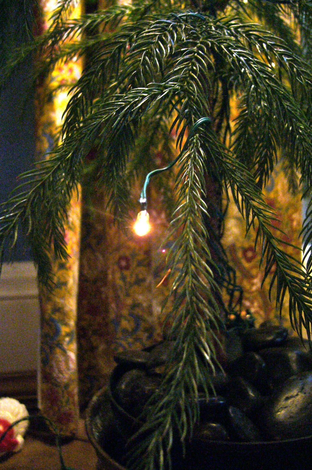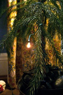 We bought this Norfolk Pink years ago to use as a small Christmas tree. It was very small when we purchased it and now it is large enough to wear 20 battery-operated lights all on its own. They are so cute.