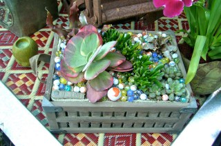 | Note to others: This garden decor is approved by my husband, especially if attached to our Douglas fir tree, but the cool crab made out of a flat rock and rusted metal is not. |