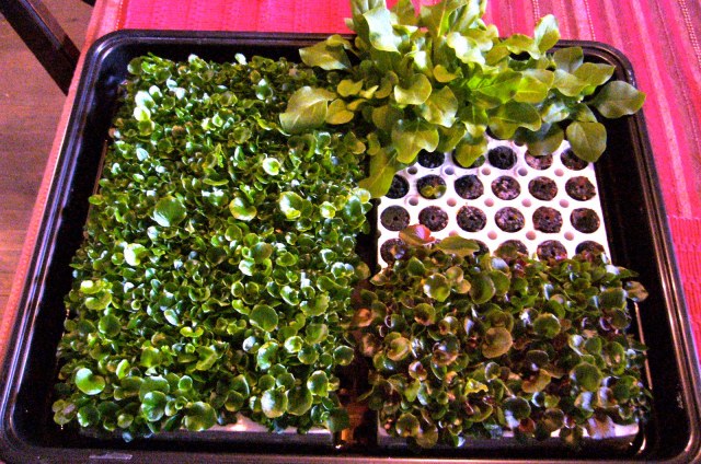 Results: Very interesting and 100% expected! The tray on the left is all Green Leaf White baby begonias. The tray on the right has some striped lime petunias on top, the mostly empty area in the middle is where the mostly sterile Ambassador Red begonia seeds were planted, and the stuffed area on the bottom is full of Bronze Leaf White begonias.
