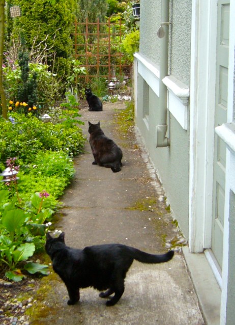 Wordless Wednesday: 3 Black Cats Go Out to the Garden