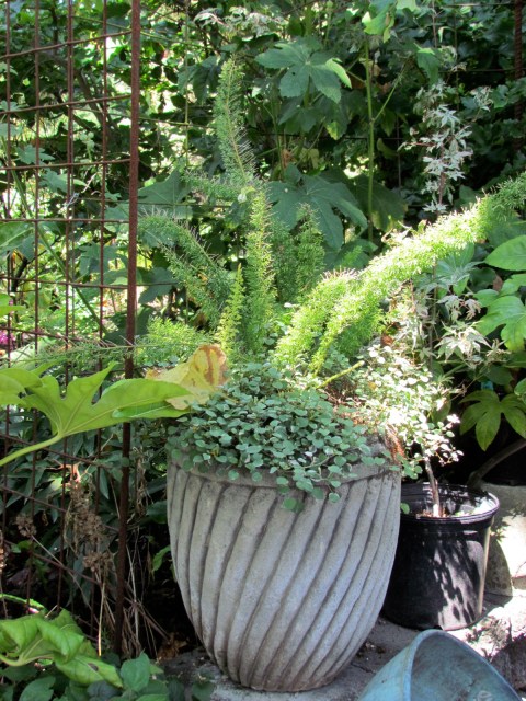 Nothing makes me happier than an Asparagus fern in a serene formal planter. It floods me with memories of the Alcazar in Seville.