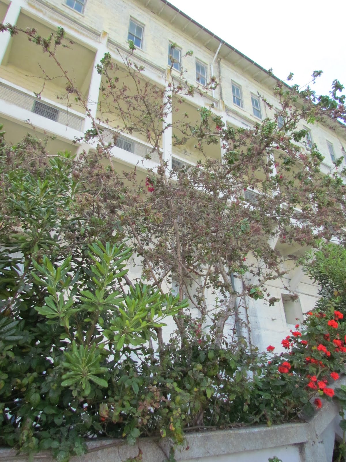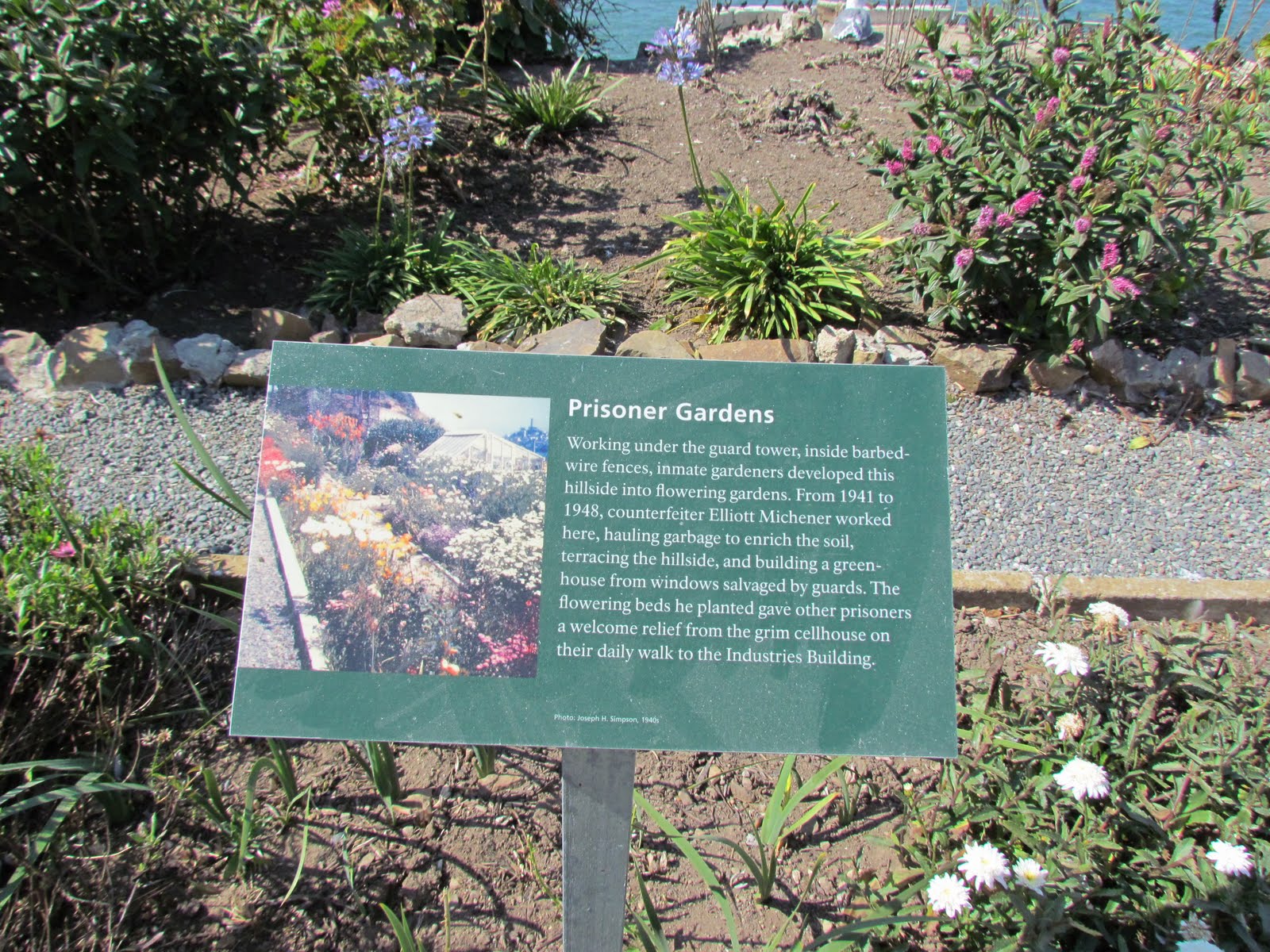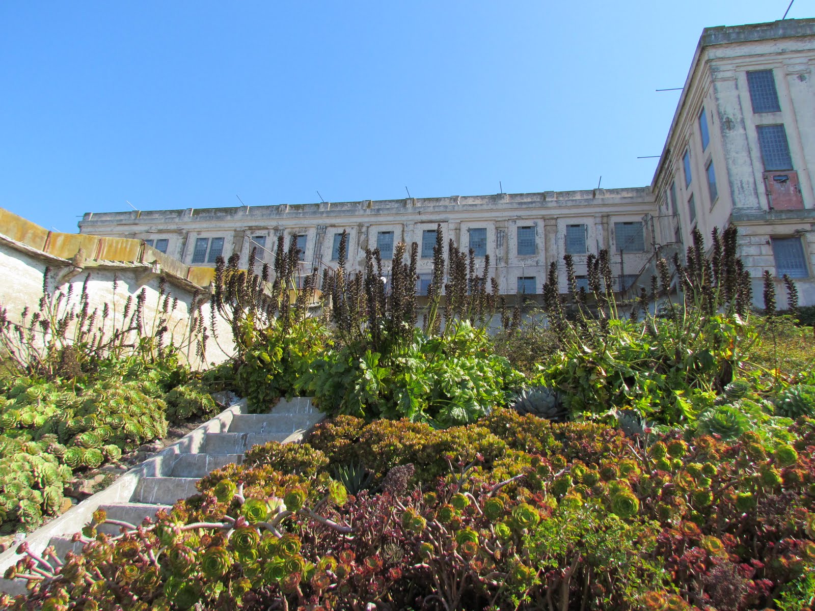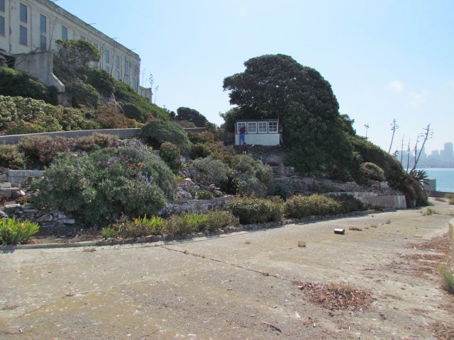 Once you reach the top, you’re at the cellhouse. If you’d continued following the garden tour, this is near where it ends, just beneath the Recreational Yard, where the fenced in prisoners’ garden once was and where it has been restored. (Note the Lobularia maritima in the foreground.)