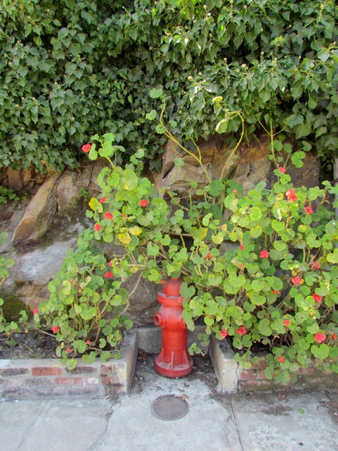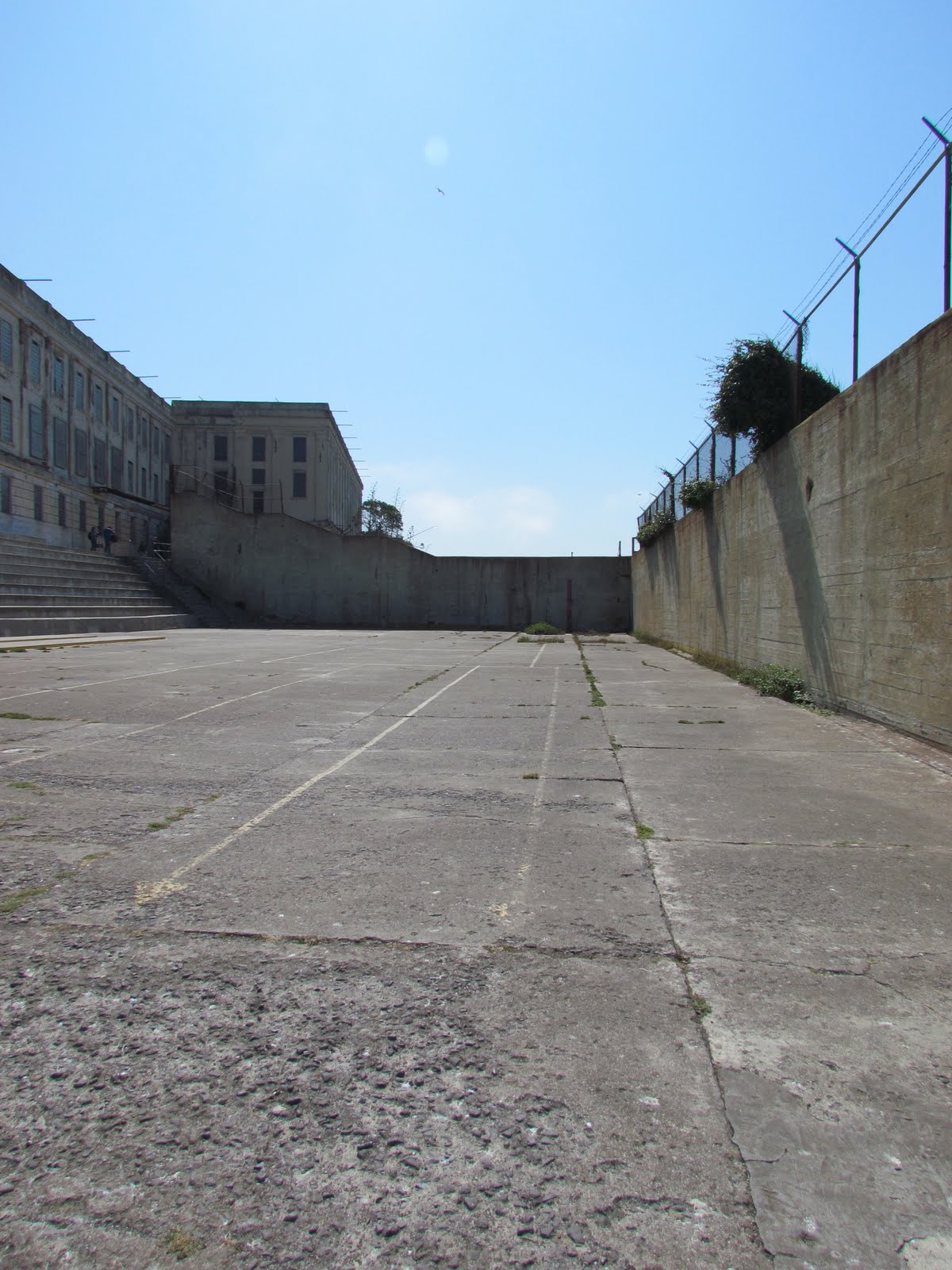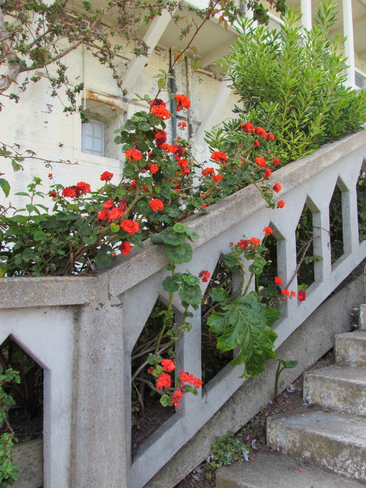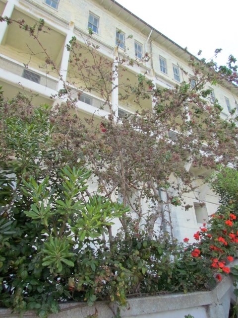 Once you reach the top, you’re at the cellhouse. If you’d continued following the garden tour, this is near where it ends, just beneath the Recreational Yard, where the fenced in prisoners’ garden once was and where it has been restored. (Note the Lobularia maritima in the foreground.)