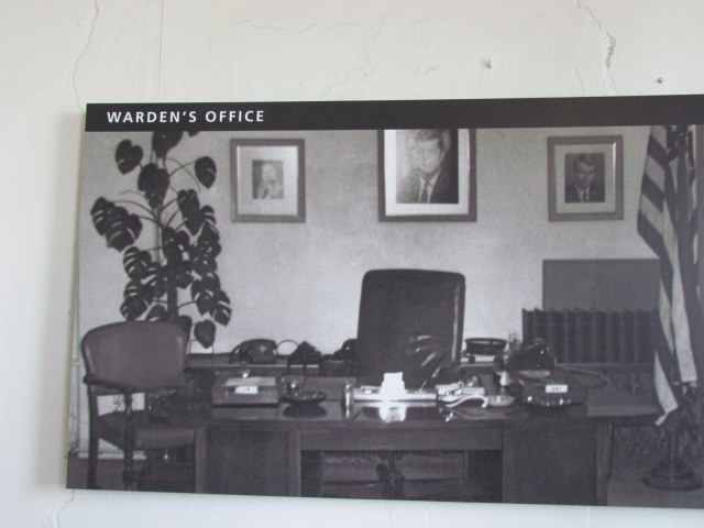 | Monstera deliciosa in a photo display in the Warden’s Office of what it looked like during the Kennedy administration. |