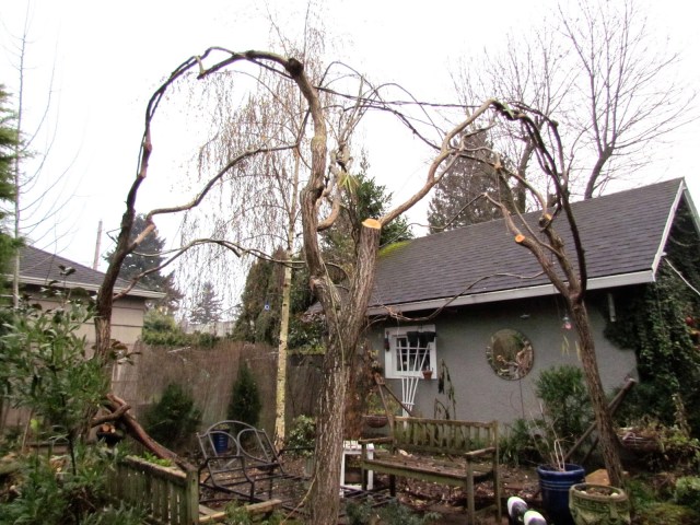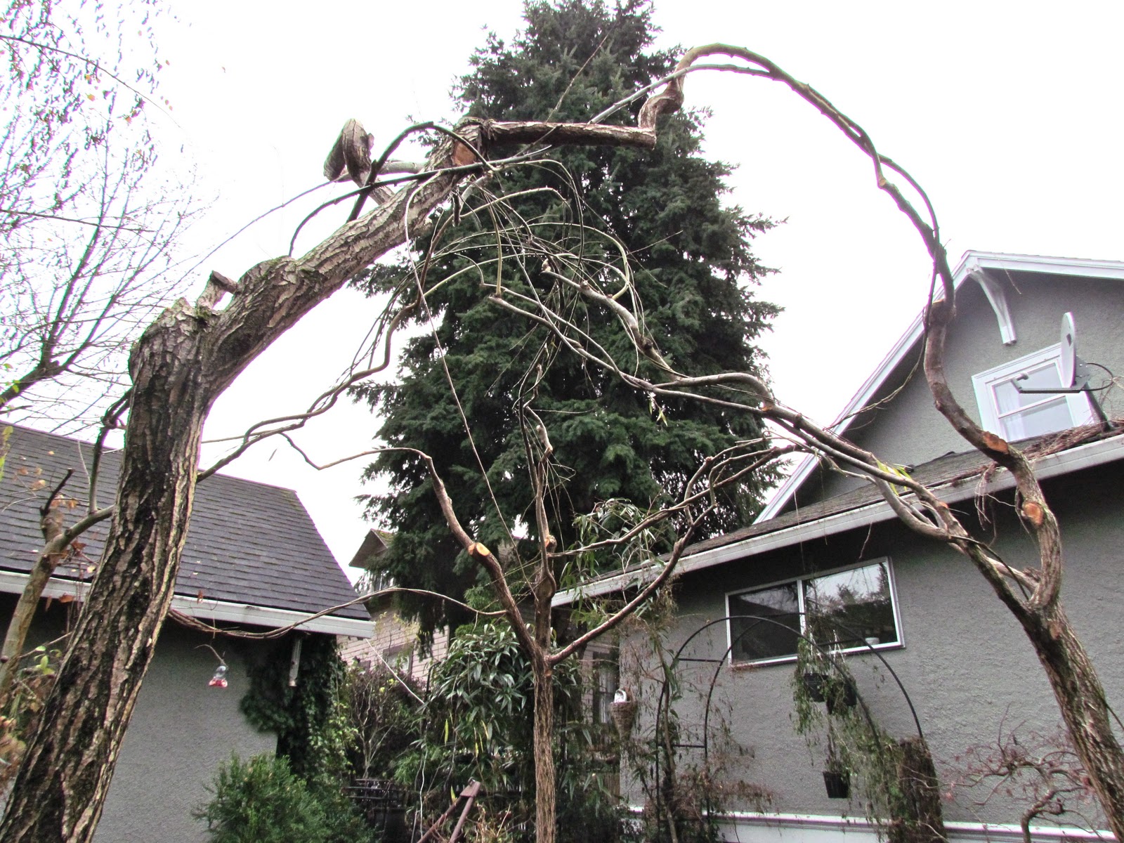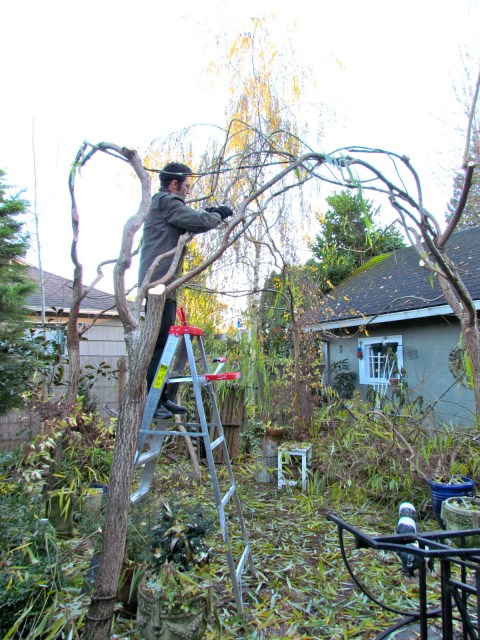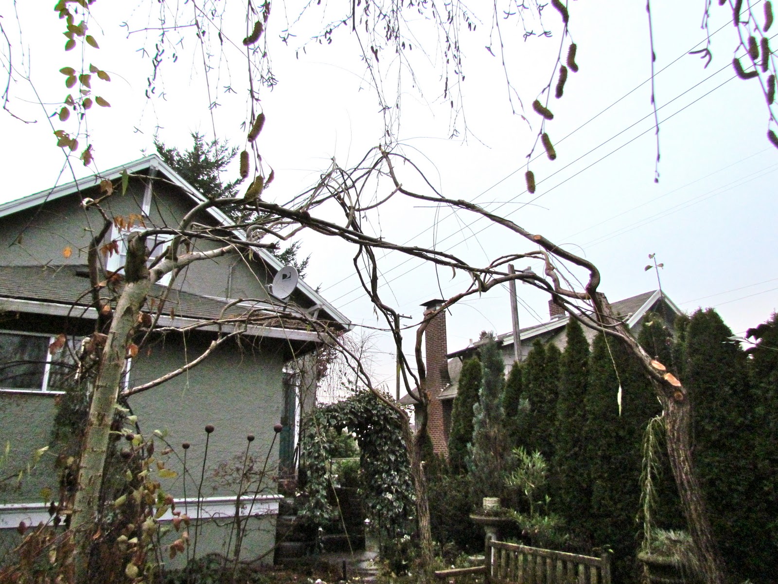 A week or so ago my husband trimmed up our willow arbor in the back garden. It is a task that we neglected to do last year and we paid heavily for it this year. Much of the growth that could have been harnessed for the structure’s integrity was lost, but next year, this won’t be the case. The arbor has been streamlined.