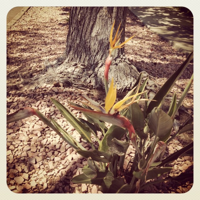 You can plant a Bird of Paradise (Strelitzia) here in your hell strip—no problem!