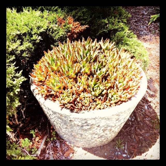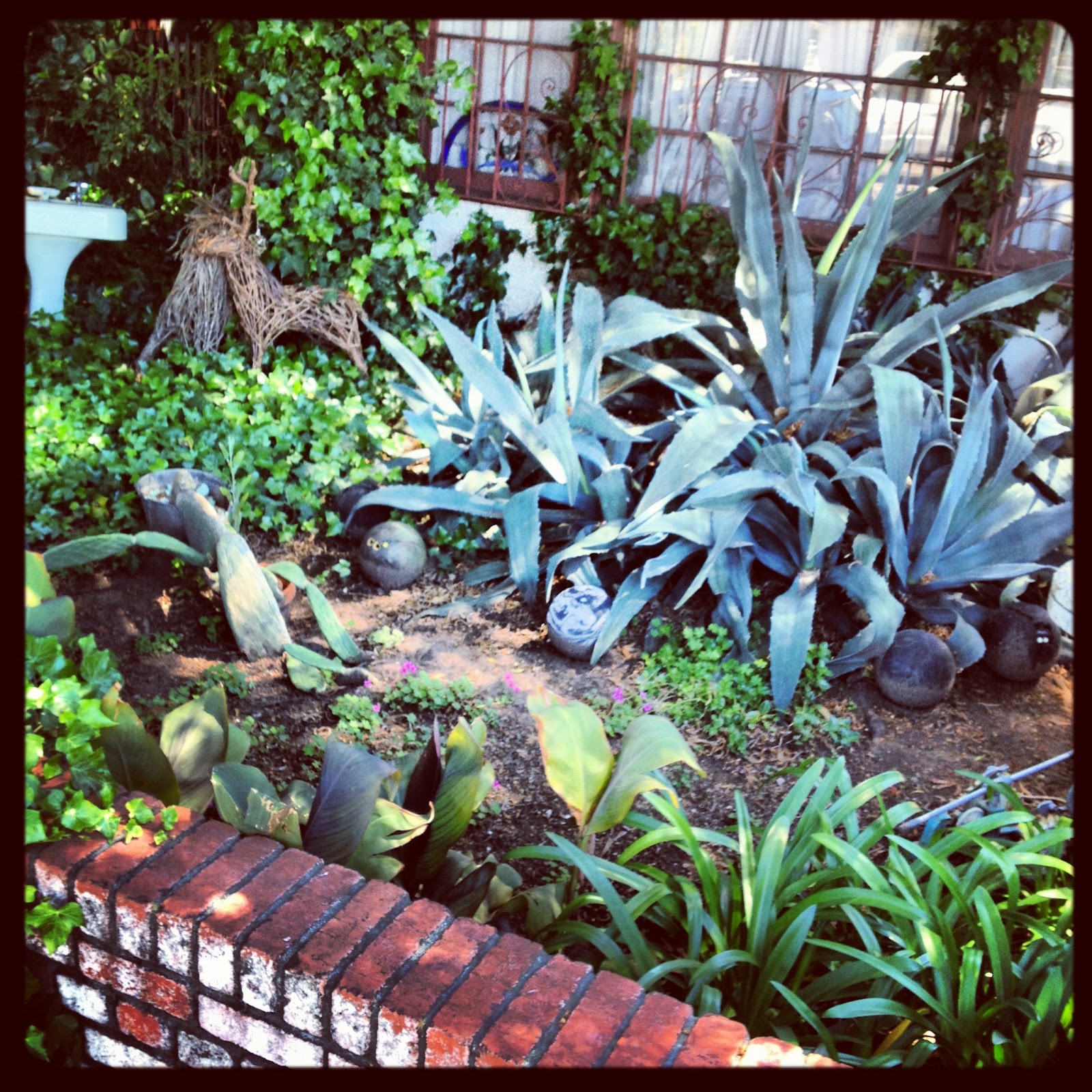 This quirky garden was hard to miss: Agave americana, Agapanthus, Canna.