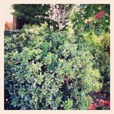 Jade Tree hedge. Yes, the houseplant. Crassula ovata.