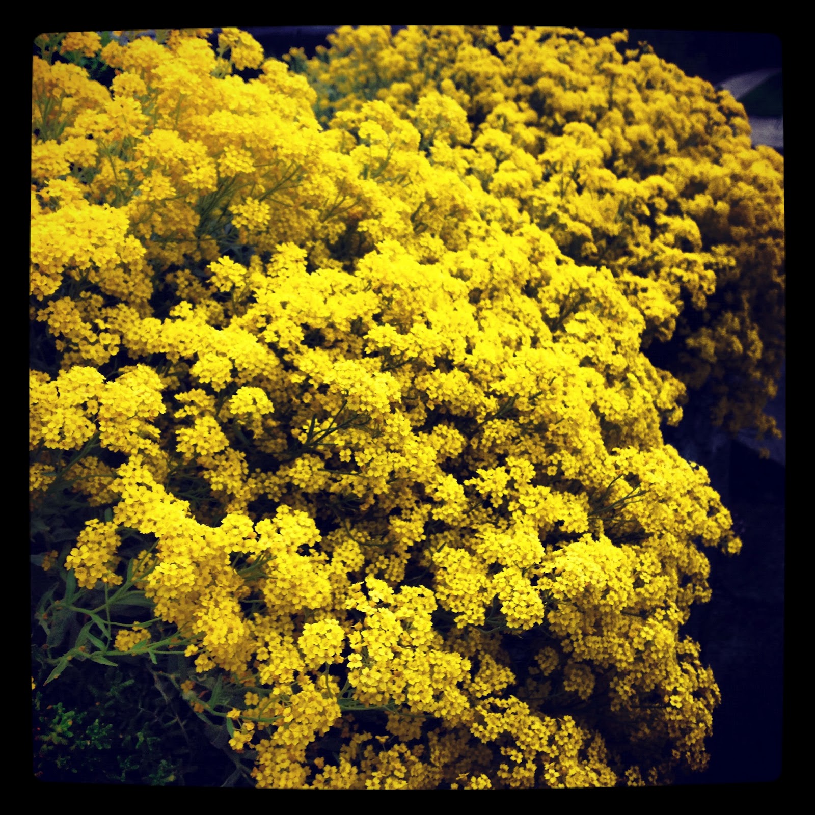 Rockery overflowing with Basket of Gold, Aurinia saxatilis.