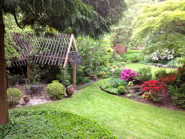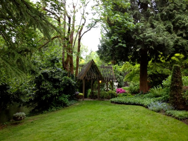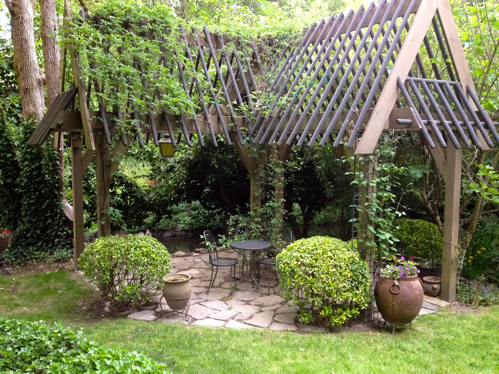 The garden is beautiful and obviously “mature.” I love how the little plants grow in the pavers and everything if full size. It also looks so “tucked away” like your own little world.