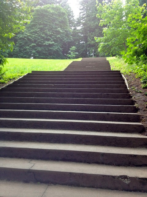 | Staircase at Mount Tabor Park. I trotted up these stairs for the first time last week at a pace I was almost proud of and it felt great. |