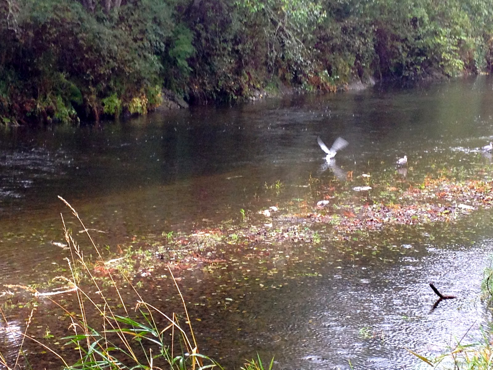 For several days I watched the birds as they’d fly up and down the small coastal river behind the house. They were greedily picking at what remained of the salmon from the last run this season. The fish really do spawn and die and yet they still give back to the natural world until every last bone is picked clean.