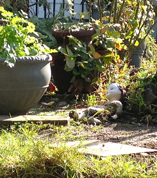 While strolling along, I saw this unusual garden ornament and I thought about how funny it was to see a doll in the garden. It tickled my inner goth girl.