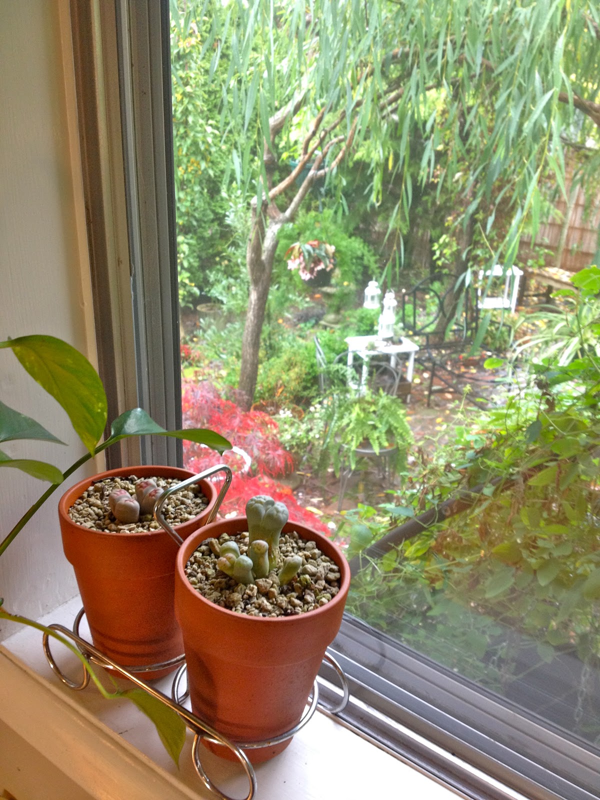 Some of the “living rocks” were in a planter I picked up at a garage sale. The little girl helping her mom cautioned me not to think they were dead if they happened to shrivel up. After adding a bunch of new succ's to the planter, I must confess I've lost track of their location. That little girl would be so disappointed in me.