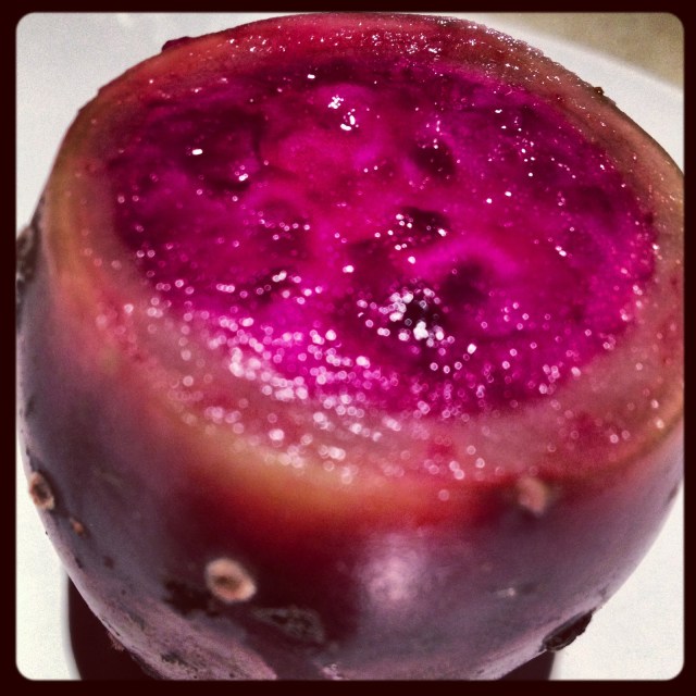 Tasting of apple and watermelon, it’s really a strange fruit. Not sure if these were unripe or older fruits though since they happened to taste more of Aloe vera to me, but they tasted of prickly pear and that’s all that matters. Tasting subtly of prickly pear is the way to go. (Yes, I eat Aloe vera too.)