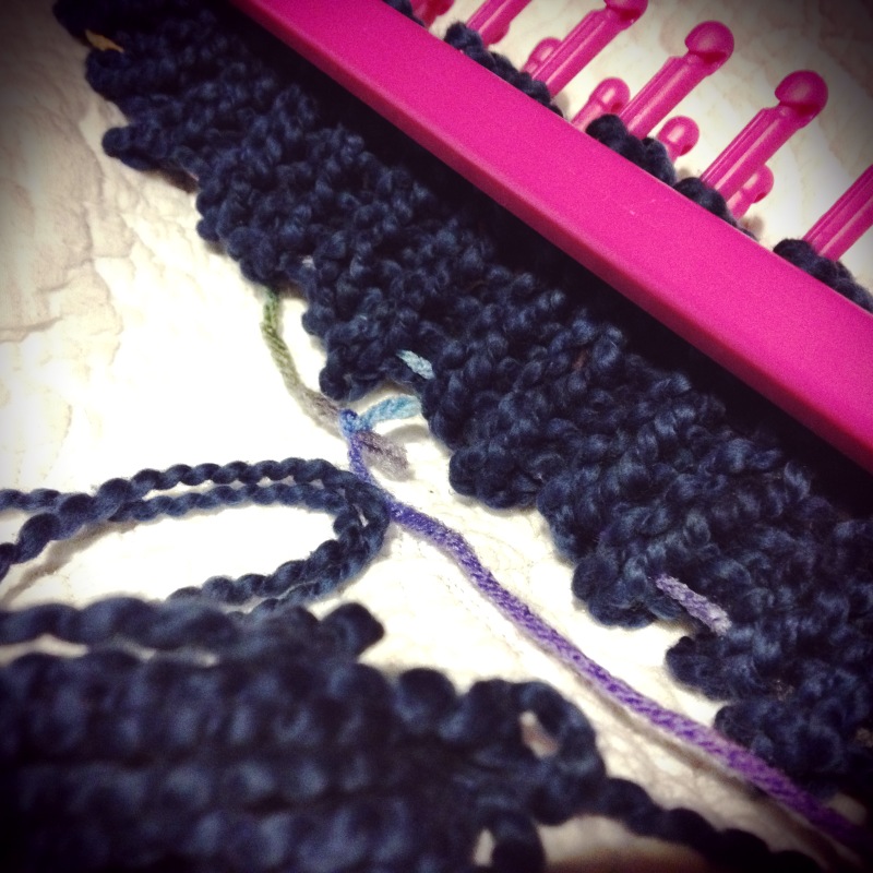I started a wide scarf for myself using organic cotton yarn on one of my knitting looms. Most materials bother my skin a lot so it was fun to go to the yardage store to pick the yarn myself. I felt so empowered—for lack of a better word.