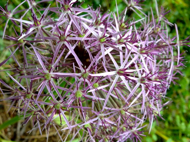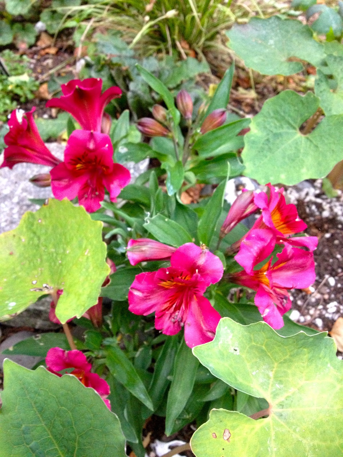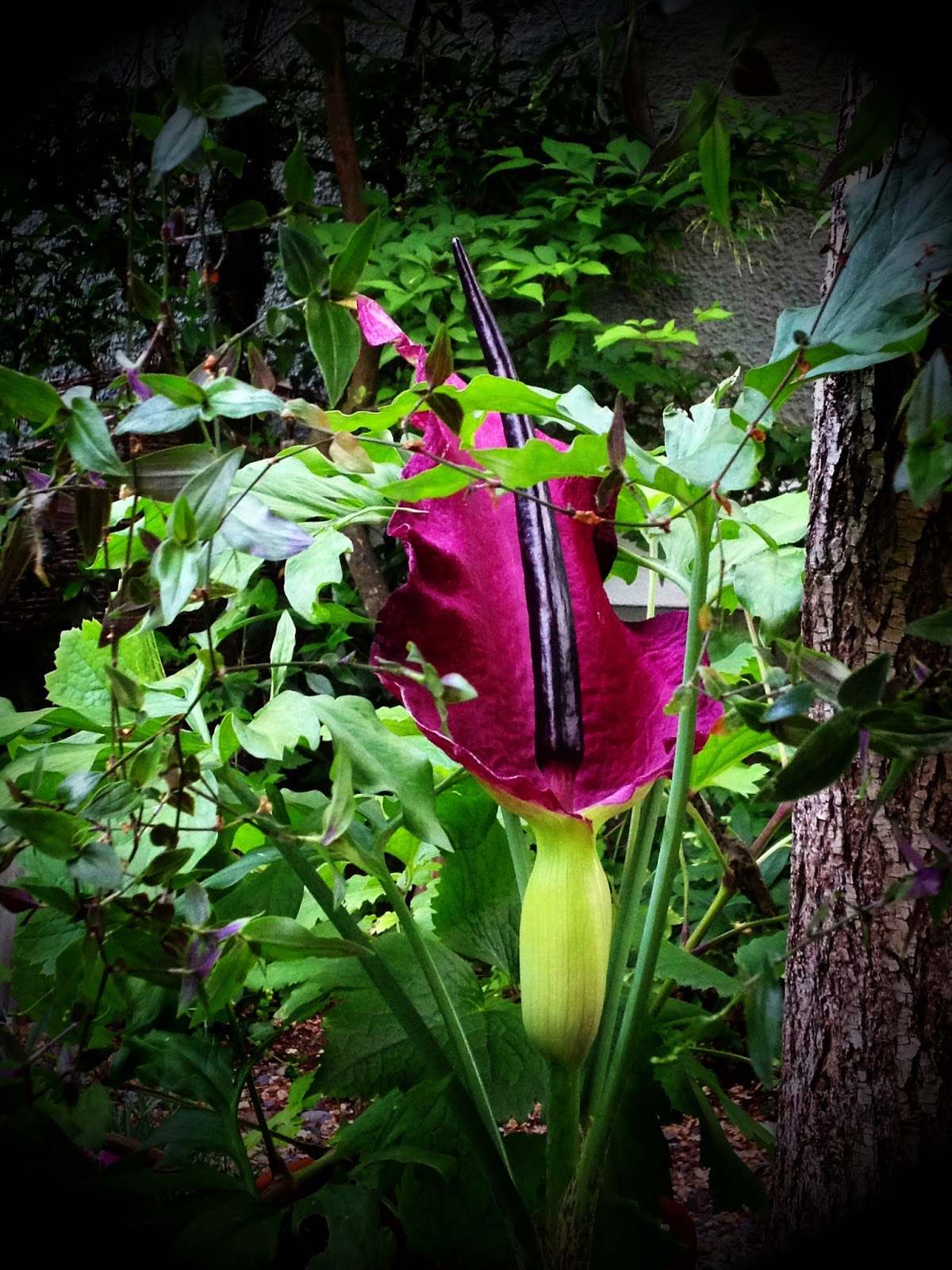 | Tradescantia pallida with a friendly Heuchera bloom. |