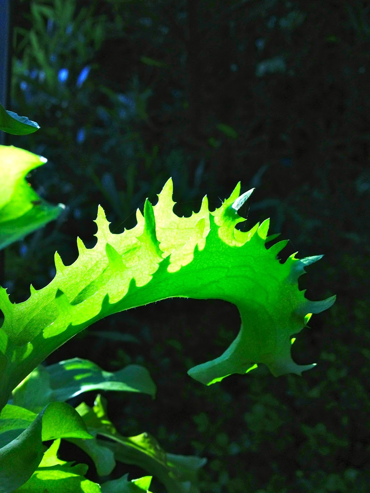 | Unknown lettuce leaf in a lettuce mix I grew from seed (Lactuca). |