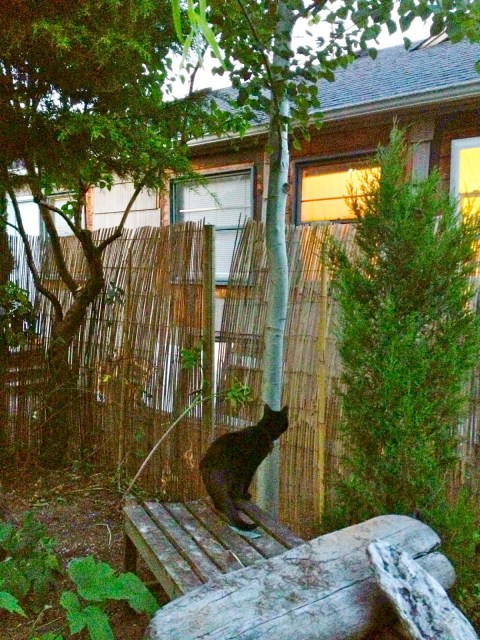 My house faces west. The front yard is not really coherent. There is the tiny hell strip, cut up into three uneven pieces. There is a central area, with a privacy planting, meant to keep the eyes of those on the sidewalk away from my large front window. The parking area is there too but it’s currently filled with racks and pots and is more of a staging area this summer. An edible garden once ran along the southern side of the house. It is overgrown now and a mass of tangled plants. It was created initially to be the domain of my ex, but I’ve not yet fully reclaimed it. I hope to soon.