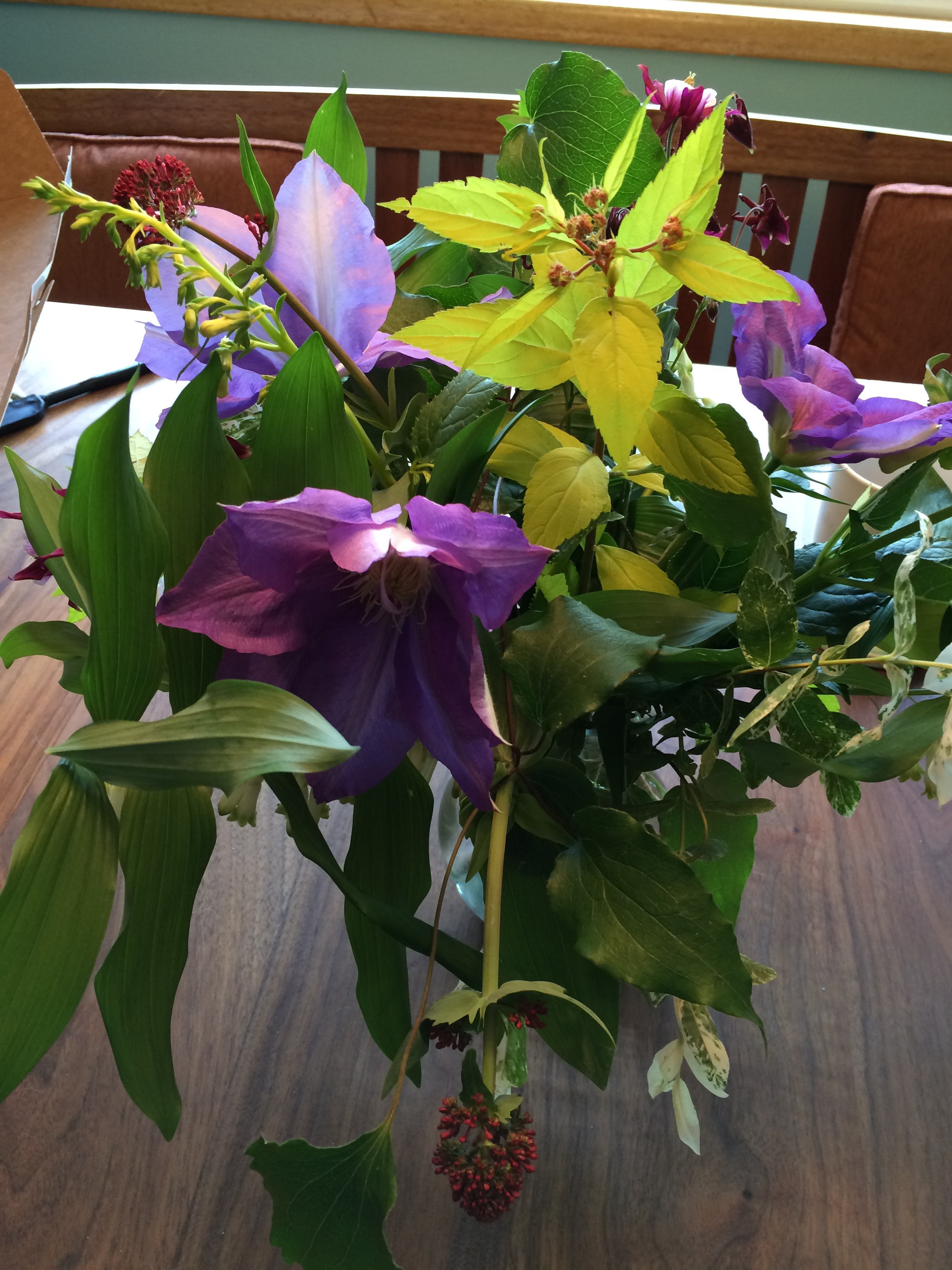 On Saturday night I hosted the dinner and you can read about that over at Tangly Cottage Garden Journal. It was great fun to spend time with another garden blogger from outside of Portland and to hear how work had been going. I also got to meet a new plant friend.ย