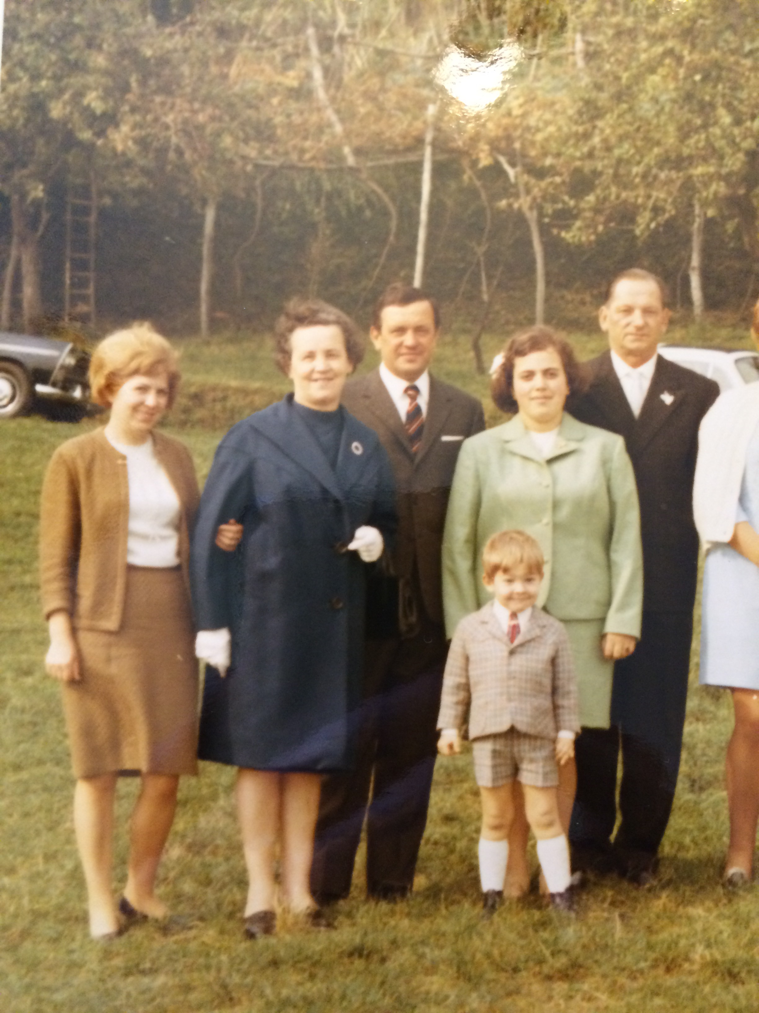 Seen here in a photo, that’s my husband with the little chubby knees and his parents are on either side of the woman in blue.
