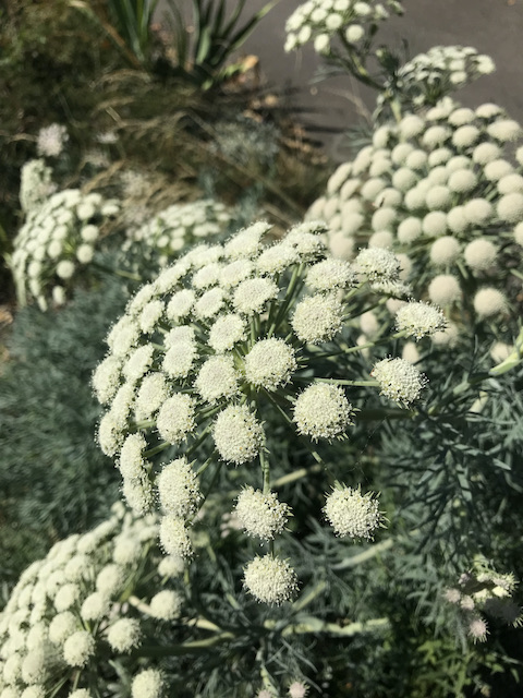 Another plant that I’m enjoying is this Seseli gummiferum at work. I walk by it a lot and can’t recall if this is one from Evan’s seeds from his garden, but I think that it is. I have grown a few batches of these and while they were wildly popular a few years ago, I think they fell out of favor a bit due to their floppiness. I adore them and all of their imbalanced-ness. They’re definitely quite attractive to the pollinators.