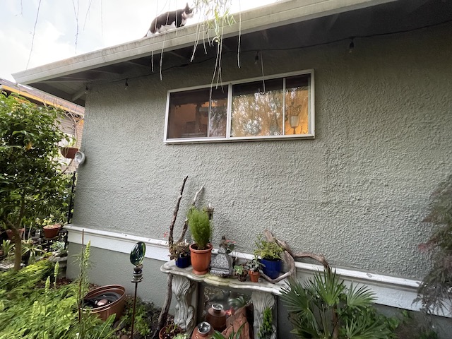 The other really big issue is the back window. All three sides of the back room have these 1970s windows but I’ve not yet “fixed” this situation to my liking. I still need to order a nice big European style wrought iron window box. It will definitely help.