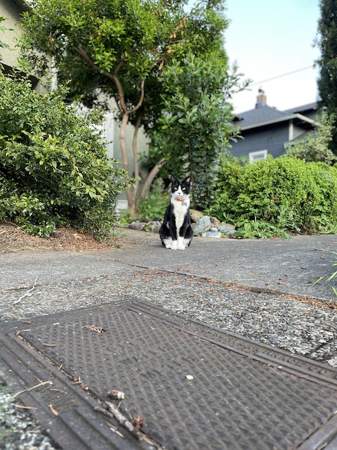 Felix is the king of his sidewalk. He was pleased that I was cleaning it up this week.