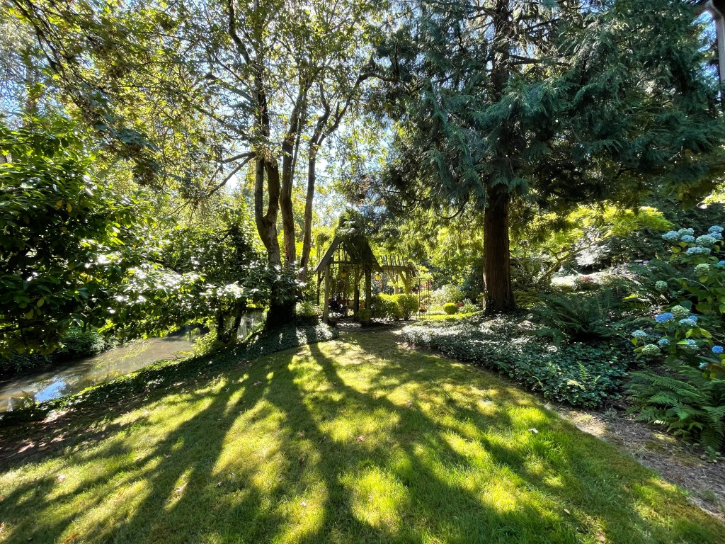 Long ago this was where my treehouse stood. Built for my brothers, I was the last occupant. Than one morning when I was 20 I woke up late and Mom was down in the garden with a chainsaw, cutting it all down. Today, there is this lovely sitting area there.