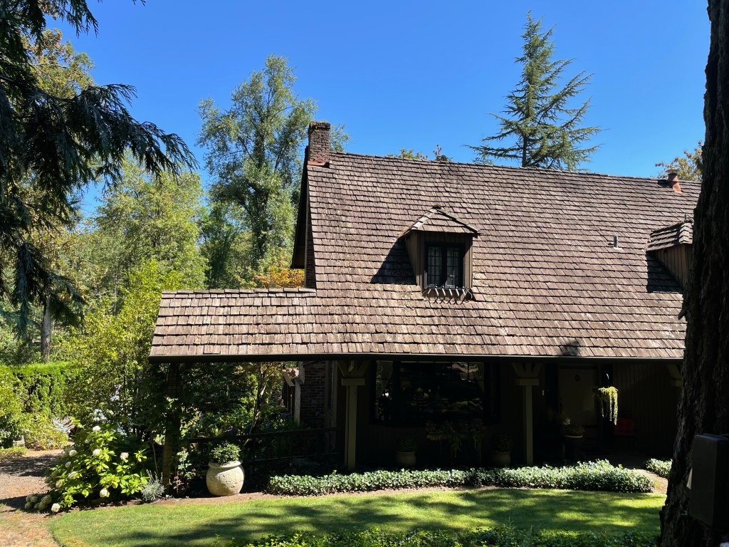 The other quiet place was my room. That dormer up there on the second floor was mine. It had a lovely view of the huge Doug fir, and I loved to watch it sway but was afraid of it during windstorms.