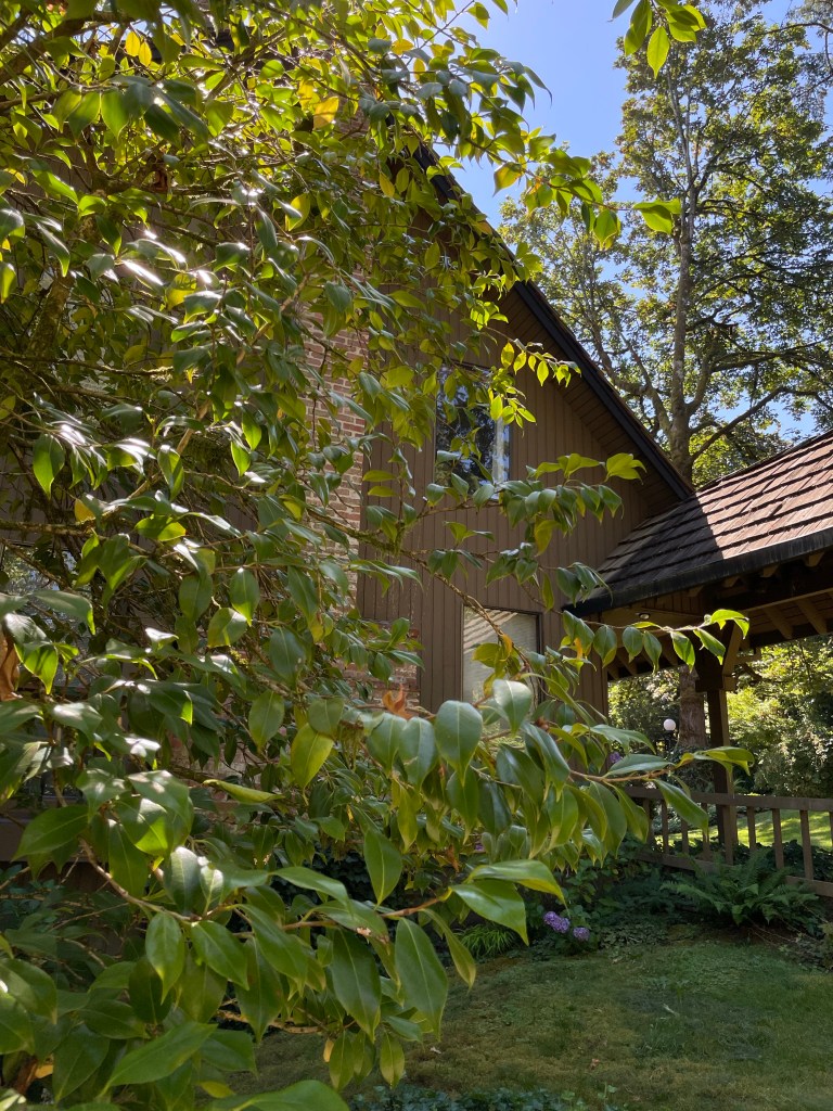My other window looked out towards this camellia but when I was a girl, there was a native dogwood, a Cornus nuttalii. It was lost in an ice storm and I cried and cried. It broke my little heart since it (to my mind) was the most beautiful thing I’d ever seen.