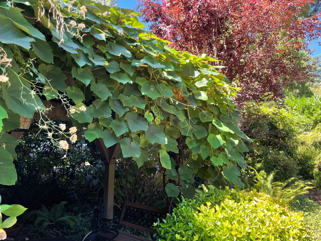 Amongst the garden plants in Mom’s garden are a few oddballs. This Vitis coignetiae is one of them. Over the years though, she’s mostly simplified things. If a plant is too fussy, or doesn’t meet her performance standard, then out it goes.