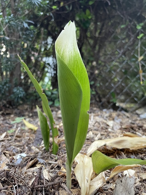 When I first started working at Secret Garden Growers I divided some of these plants. What settled into the pots was quickly sold, and there were no more left for me to purchase. When I divided some more, that second time I made sure to grab one for myself. While this doesn’t look like much, blame the gardener in this case, and not the plant. I kind of let this one get gobbled up by some weeds all of last summer so it’s only now really coming into its own. I was thrilled to see this white tip emerge just recently. (And yes, I will apply some Sluggo soon.