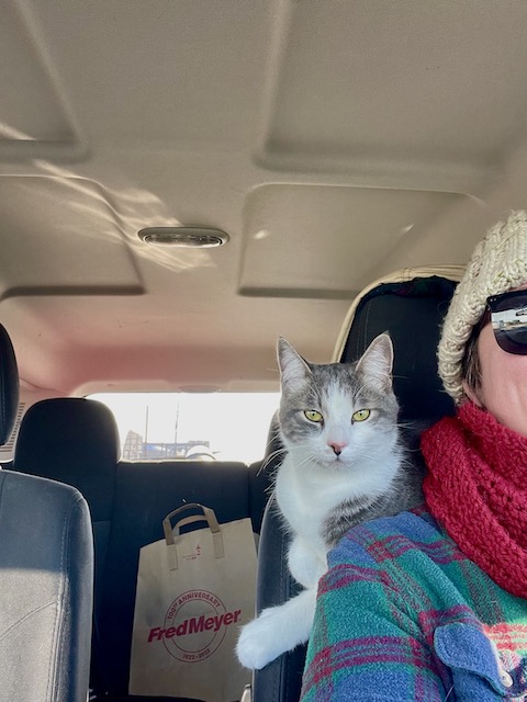 Reuniting Alfie with the woman who helped to rescue him was another task this week. He was a feral kitten rescued at a farm on Sauvie Island, and is not like my other cats. Cistus Nursery is on the same island, and at that time, my coworker had a second job at the farm, so he was the one to ask me if I wanted a kitten.