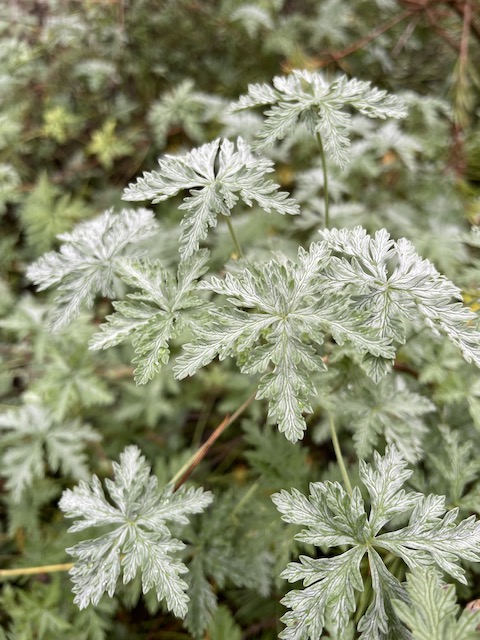 This plant is not yet in my garden—but I have quite a few of its seeds. Evan collected them for me for several years, I sold them in my old shop, and I will grow all of the ones that I have left of it. It’s a species from South Africa with incredibly lovely silver veined leaves. We took cuttings to take to Cistus Nursery too. Let’s hope that both of our crops work out so we can get this one into cultivation around here.