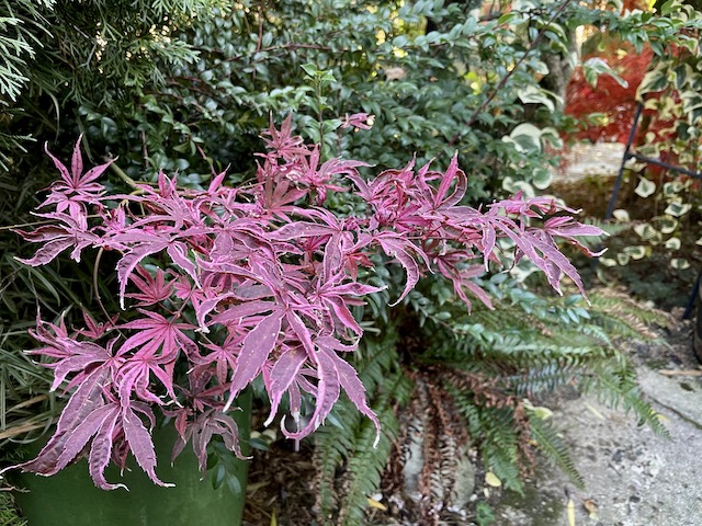 This is a small slow-growing Japanese maple for me. To be honest, I’ve had it so long now, I’m not even sure where I bought it. For a few years I thought about moving it, but each autumn it does this and I’m in love with its location all over again.