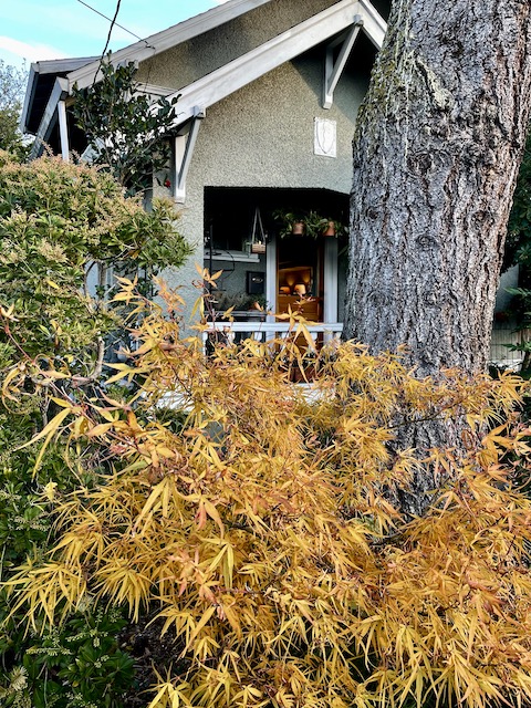 Love the fall color each year on the Acer palmatum ‘Villa Taranto’. It matches the stain on the front door and makes quite a combo.