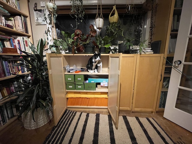 Lovely house and kitties! Cozy nooks and books–my favorite places. Do you use any sort of grow light anywhere in the house? (Living spaces, not greenhouse.) Sometimes I think of getting just one, something simple that I could move from spot to spot. But I don’t even know if that exists.