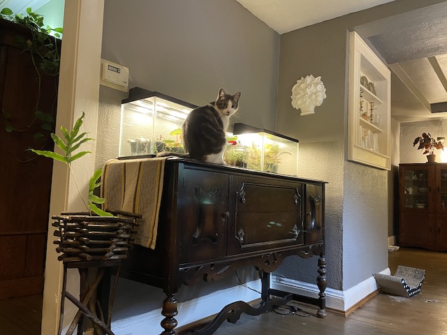 Oh these long dark nights! Luckily I have houseplants to enjoy and maintain, and four cats to keep me warm.