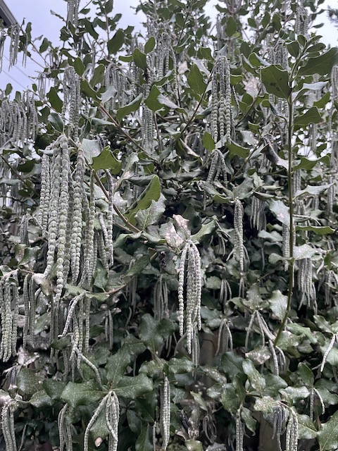 Seven: Another great winter plant in the garden, this Garrya elliptica ‘Evie’ came to me as a pet plant that had been trimmed into a lollipop topiary in a container. I’ve let it get a bit messy, and plan to cut it back now that the big show is almost over, but until then, you get this view of it. As a lollipop, it looks a lot like a dramatic chandelier. I can’t wait to see it look like that again.