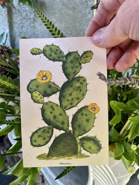 Loree and I have been friends for a long time now, she’s seen me go through a lot, and knows me well. While we both have different styles, many of our favorite plants overlap and she included them in the arrangement. (Yes, I like prickly and dangerous plants too if you didn’t know.) Back when we first met, I was known online more as Ficurinia, Sicilian dialect for prickly pear. So of course an Opuntia card made complete sense.
